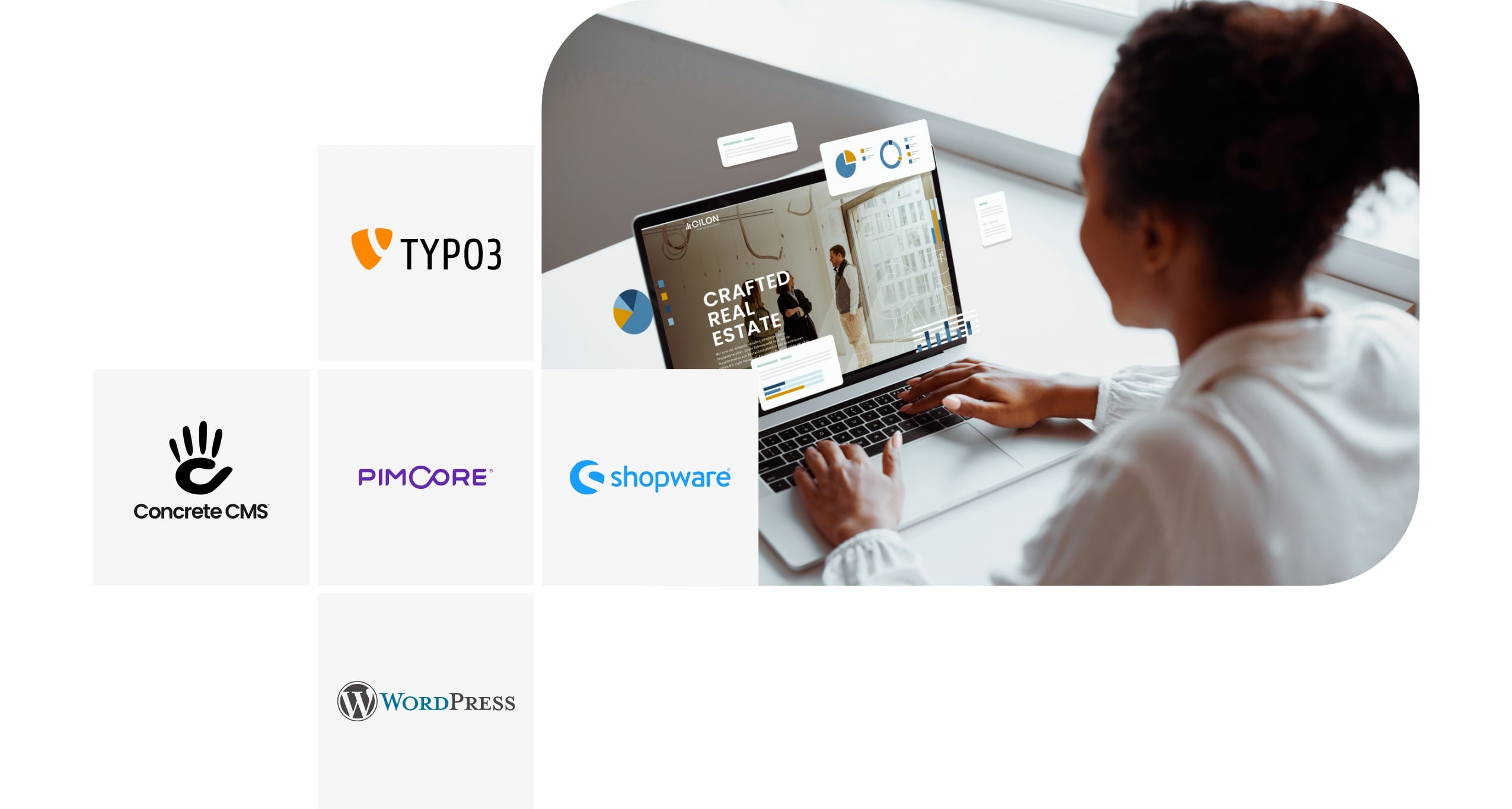 Flexibel, robust und auf deine Ziele zugeschnitten. Ob Concrete CMS, TYPO3, Pimcore, Contens CMS oder WordPress – wir setzen dein CMS perfekt für dich auf.